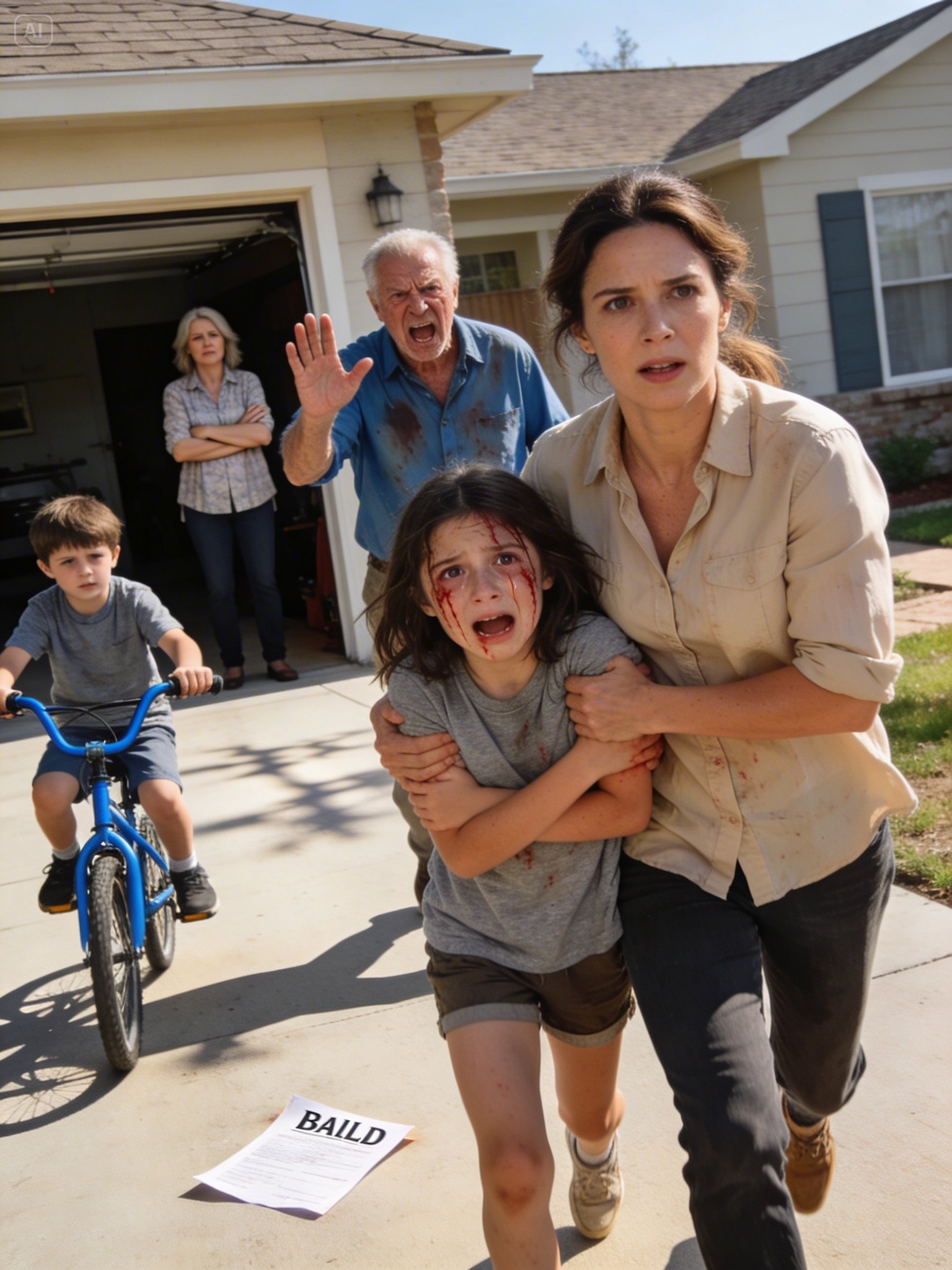 Emma rolled the bike toward my father. Grandpa, mom bought me this with her bonus. Look. Her excitement bubbled up pure and bright. My father’s eyes didn’t soften. They hardened. A bonus? he grunted. For what? Showing up. He looked at me like I had committed a crime. Dad, I worked. He snapped a hand up. Don’t talk back. Before I could stop him, he stepped forward and slapped Emma across the face so hard her head jerked sideways.