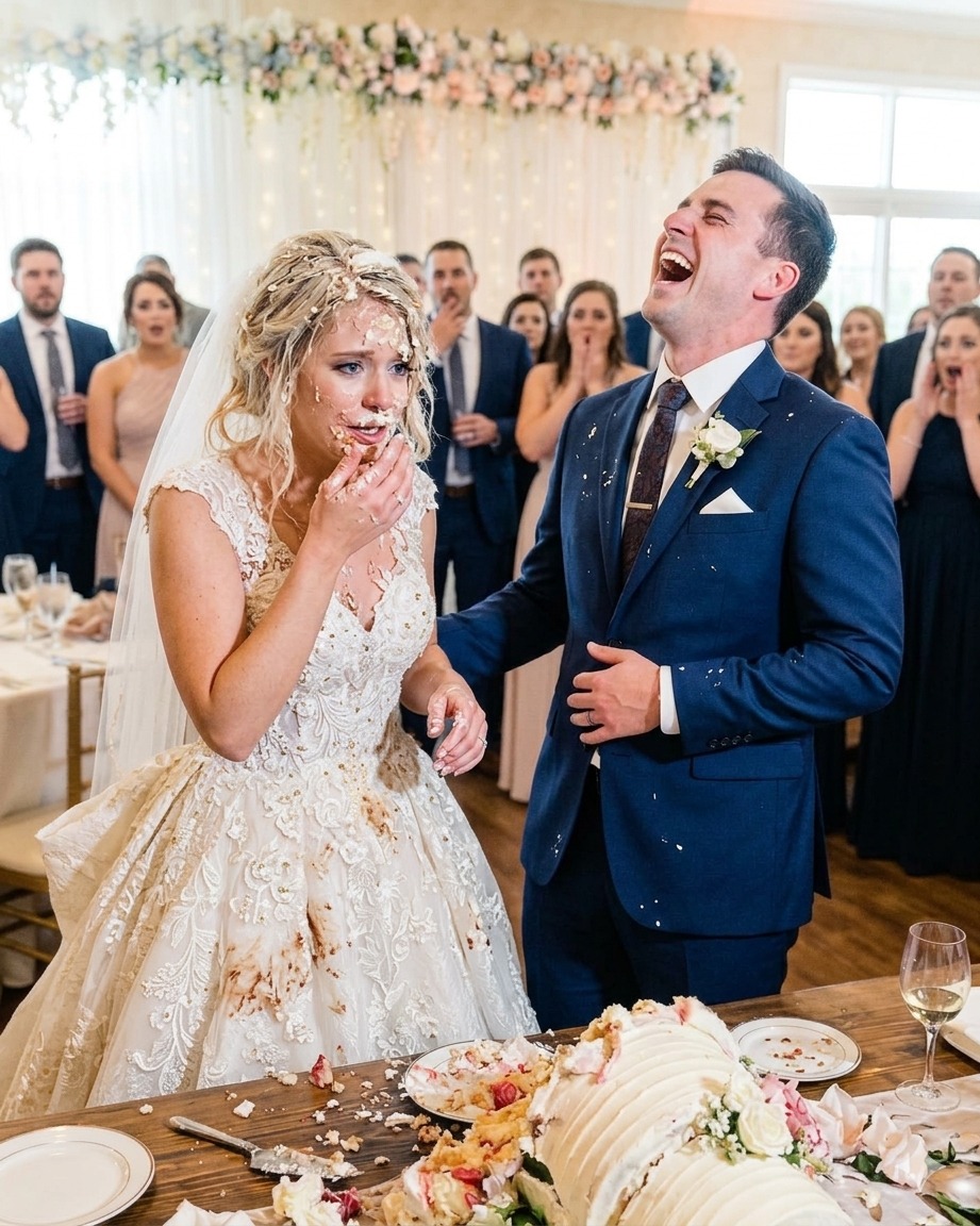 My groom smashed my face into the cake during the cake cutting as a “joke” — I was on the verge of tears when my brother shocked everyone.