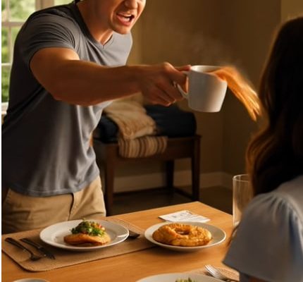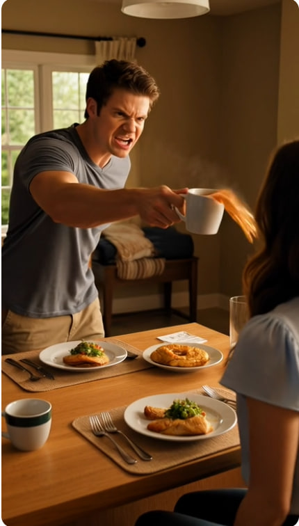 One second, I was at the kitchen counter in our townhouse outside Columbus, plating scrambled eggs. The next, burning liquid hit my cheek, chin, and neck so fast it felt like fire.