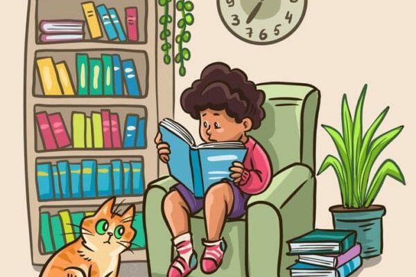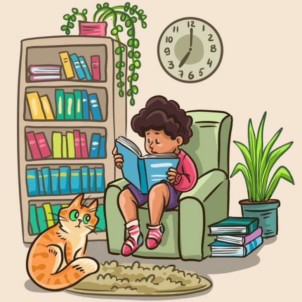You see a boy sitting peacefully, reading a book, with a cute cat cozily snuggled up next to him. But… something isn’t quite right. Your mission? Find the mistake hidden in the picture!